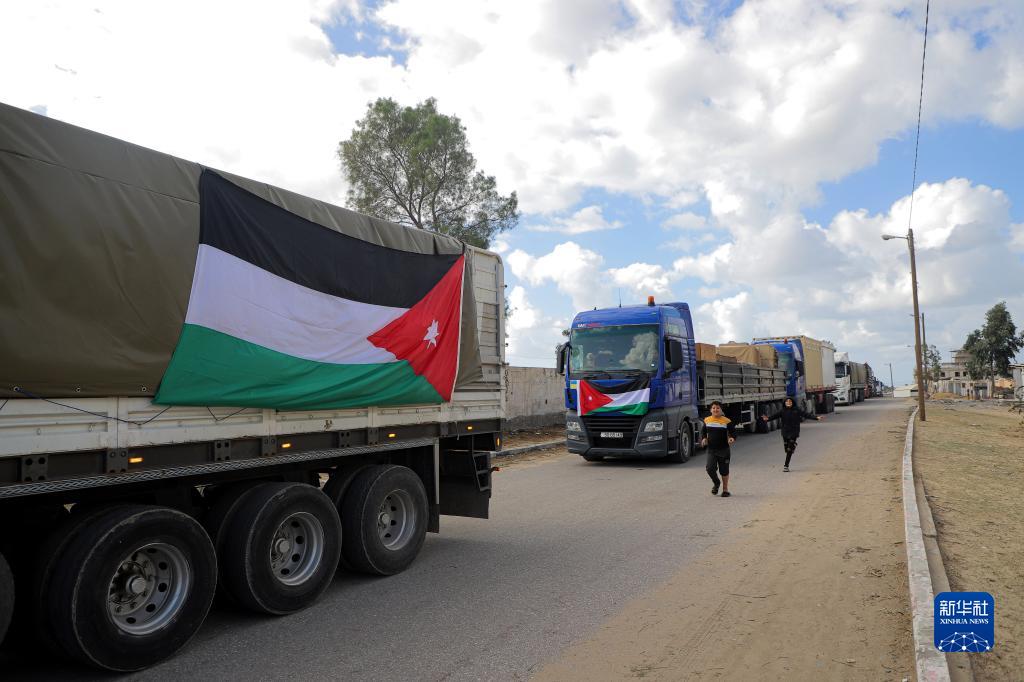 來(lái)自約旦的野戰醫院設備經(jīng)由拉法口岸進(jìn)入加沙