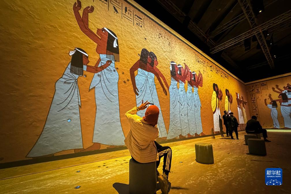 11月20日,人們在埃及吉薩的大埃及博物館參觀(guān)圖坦卡蒙沉浸式展覽。
