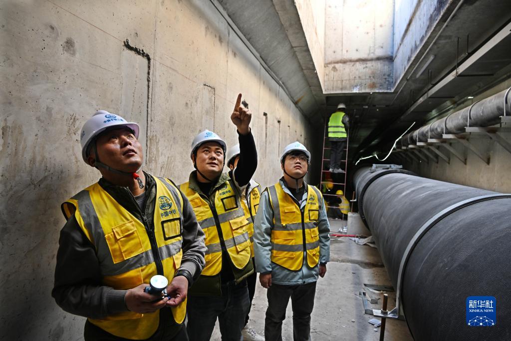 工作人員在青島市李滄區一段地下綜合管廊巡查(11月20日攝)。