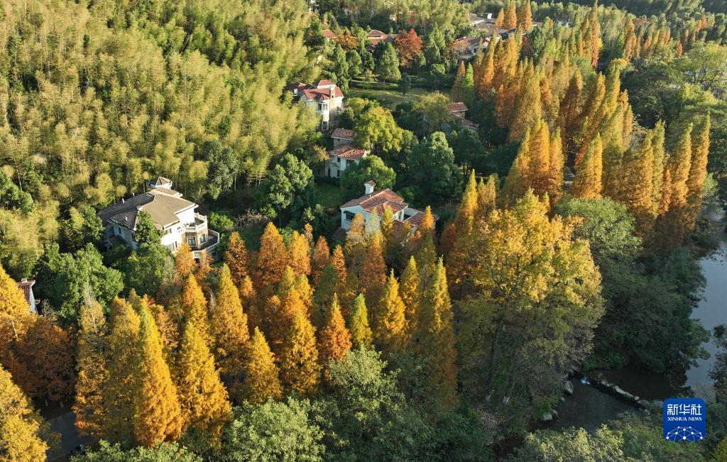 初冬時(shí)節,在位于江西省南昌市的梅嶺國家森林公園,紅色的水杉、黃色的銀杏、綠色的松柏等相互交錯,構成一幅美麗的冬日畫(huà)卷,吸引不少游客前來(lái)觀(guān)賞。