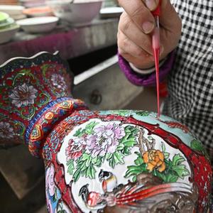 位于河北饒陽(yáng)縣的饒陽(yáng)億澤景泰藍工藝品廠(chǎng)前身是鄉辦企業(yè)官亭琺瑯廠(chǎng),是河北省景泰藍生產(chǎn)工藝比較完整的制作廠(chǎng)家。經(jīng)過(guò)多年的發(fā)展,該廠(chǎng)培育了一支技術(shù)精湛的專(zhuān)業(yè)隊伍,形成了集加工、制作、銷(xiāo)售為一體的生產(chǎn)銷(xiāo)售體系,出產(chǎn)的景泰藍主要銷(xiāo)往北京、天津、上海等十多個(gè)大城市,并通過(guò)文化公司銷(xiāo)往海外,年銷(xiāo)售額上千萬(wàn),帶動(dòng)周邊40名村民就業(yè)增收,助力鄉村振興。