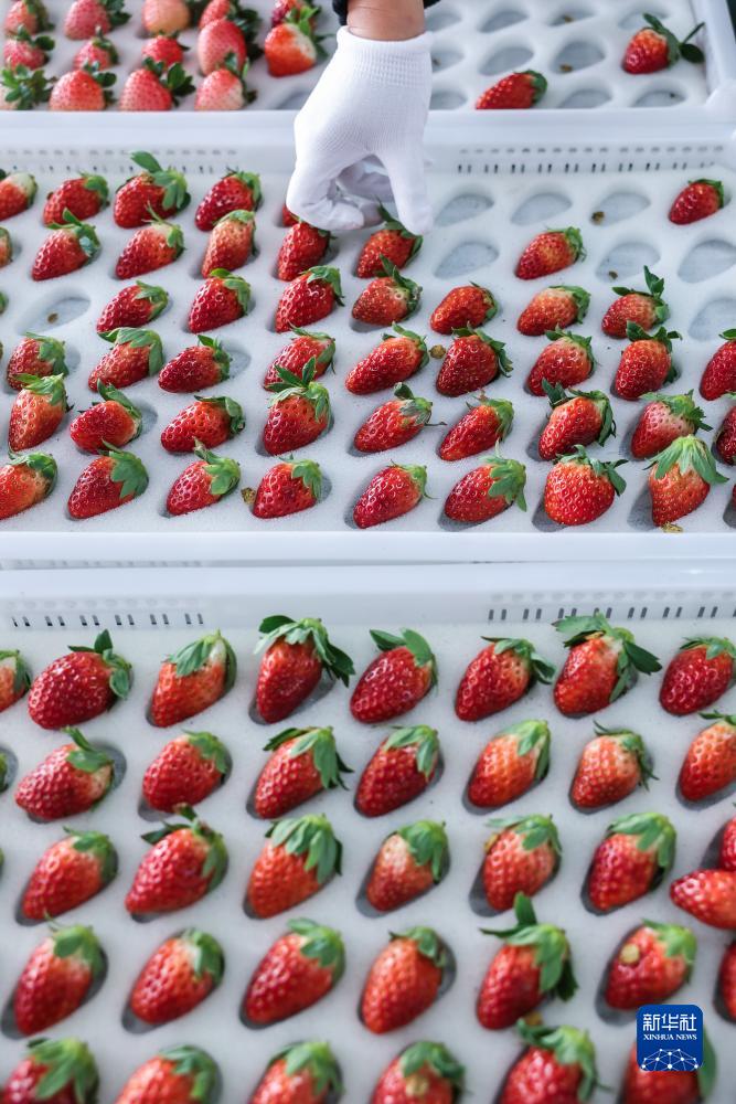 11月21日,草莓共富合作工坊的工作人員打包剛剛采摘的草莓。
