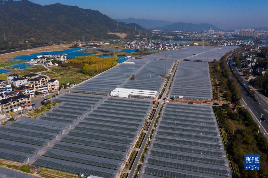 11月21日拍攝的草莓共富合作工坊連片大棚(無(wú)人機照片)。