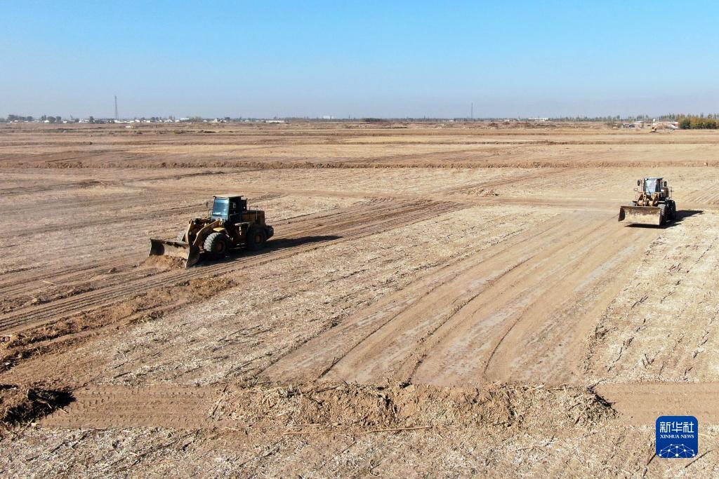 11月15日,內蒙古巴彥淖爾市杭錦后旗蠻會(huì )鎮公益渠村進(jìn)行高標準農田建設(無(wú)人機拍攝)。