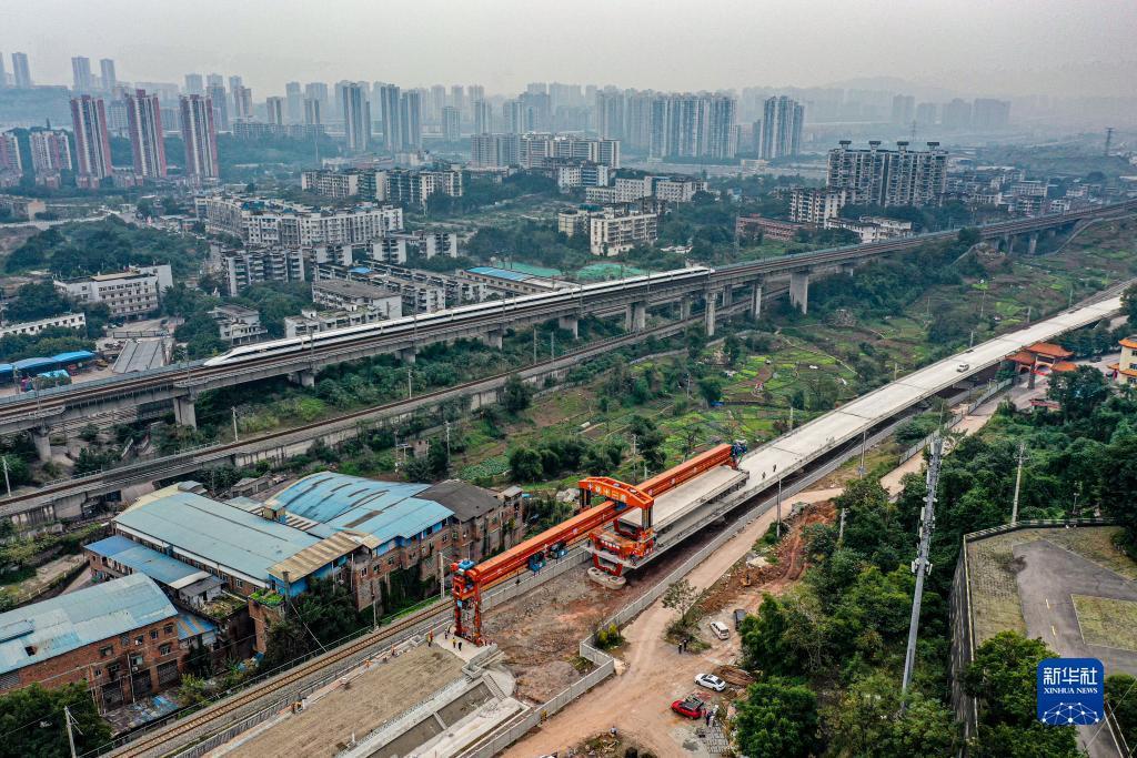 當日,在由中鐵十一局集團承建的渝昆高鐵川渝段樓灣特大橋建設施工現場(chǎng),隨著(zhù)最后一片長(cháng)32.6米、重830噸的箱梁穩穩落下,渝昆高鐵川渝段箱梁全部架設完成。渝昆高鐵是全國鐵路網(wǎng)“八縱八橫”主通道之一的京昆通道的重要組成部分,設計時(shí)速350公里。