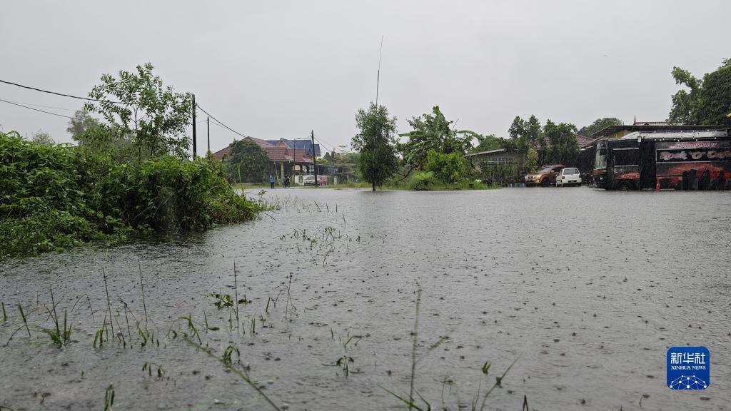 11月21日,在馬來(lái)西亞登嘉樓州,道路被水淹沒(méi)。