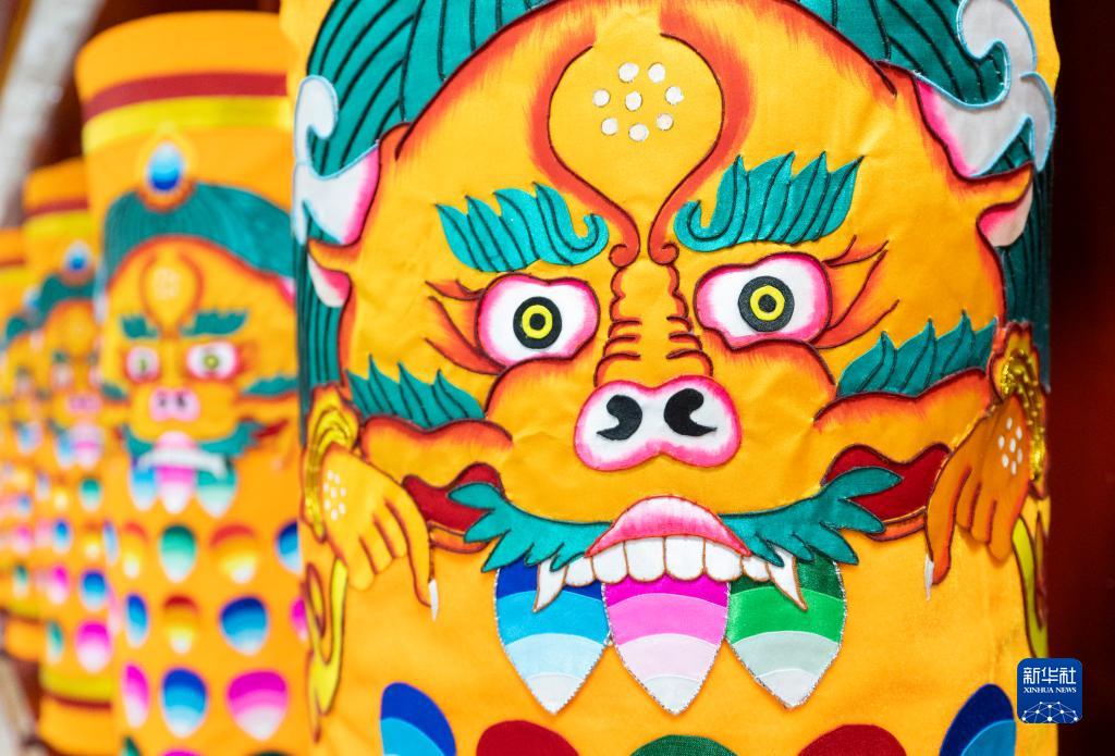 11月16日在內蒙古阿拉善盟阿拉善左旗的馬鬃繞線(xiàn)蒙古族唐卡傳習所拍攝的蒙古族唐卡作品。