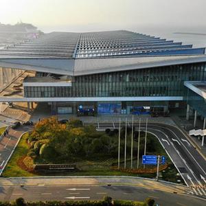 這是總建筑面積6萬(wàn)平方米的青島郵輪母港客運中心。其設計最高通關(guān)能力可達每小時(shí)3000-4000人次,年接待能力達150萬(wàn)人次。主要功能為聯(lián)檢大廳,同時(shí)配套免稅商店等商業(yè)服務(wù)功能(11月21日攝,無(wú)人機照片)。