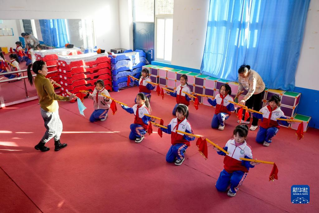 11月22日,地秧歌藝人在河北省灤州市小閆營(yíng)小學(xué)指導學(xué)生練習地秧歌。