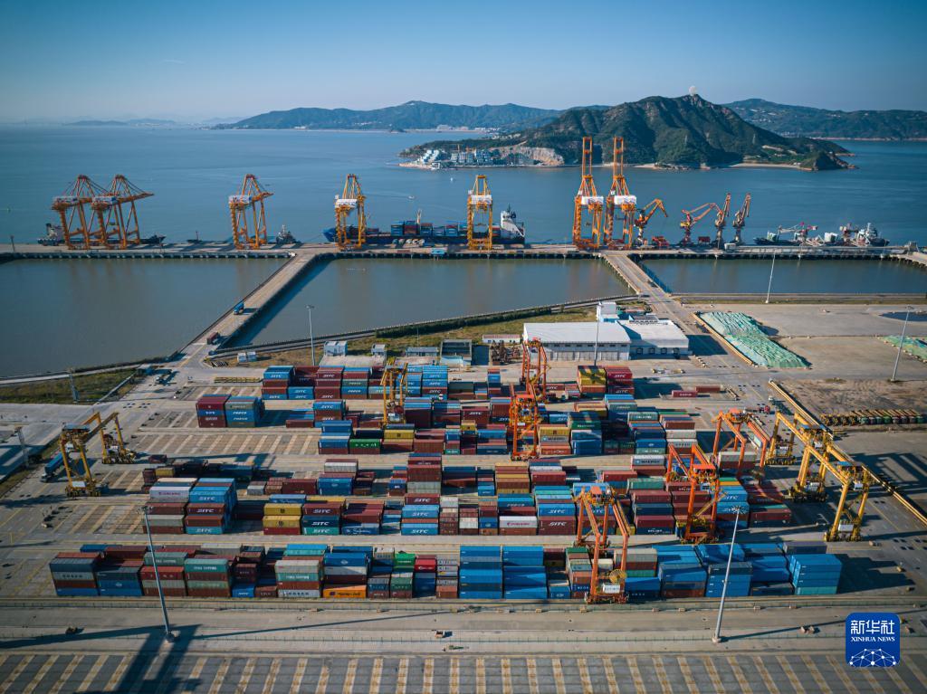 這是11月22日拍攝的溫州港狀元岙集裝箱碼頭(無(wú)人機照片)。