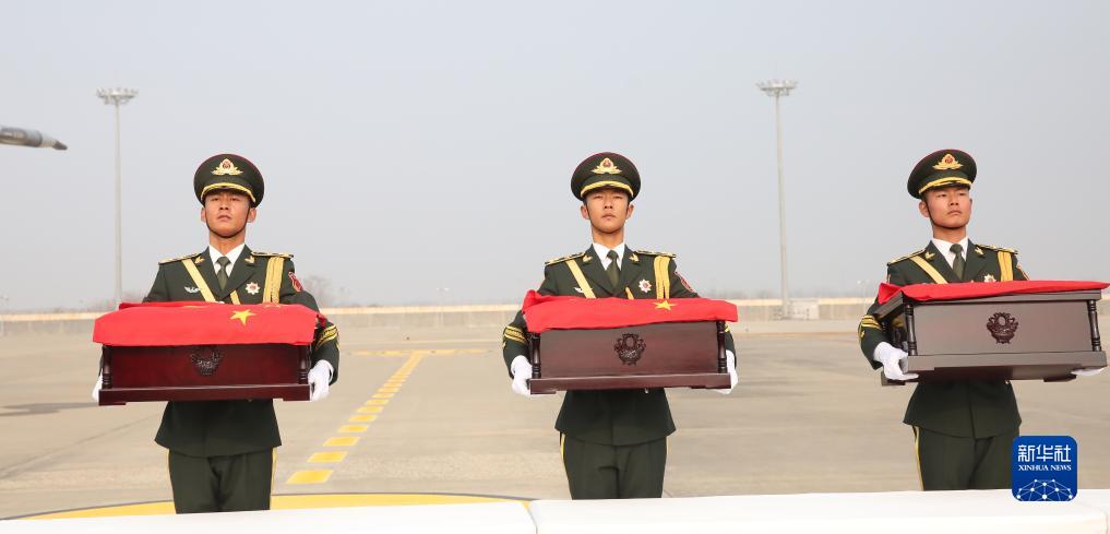 11月23日上午,中韓雙方在韓國仁川國際機場(chǎng)共同舉行在韓中國人民志愿軍烈士遺骸交接儀式。中韓雙方代表現場(chǎng)簽署交接書(shū),確認交接25位在韓中國人民志愿軍烈士遺骸及相關(guān)遺物。