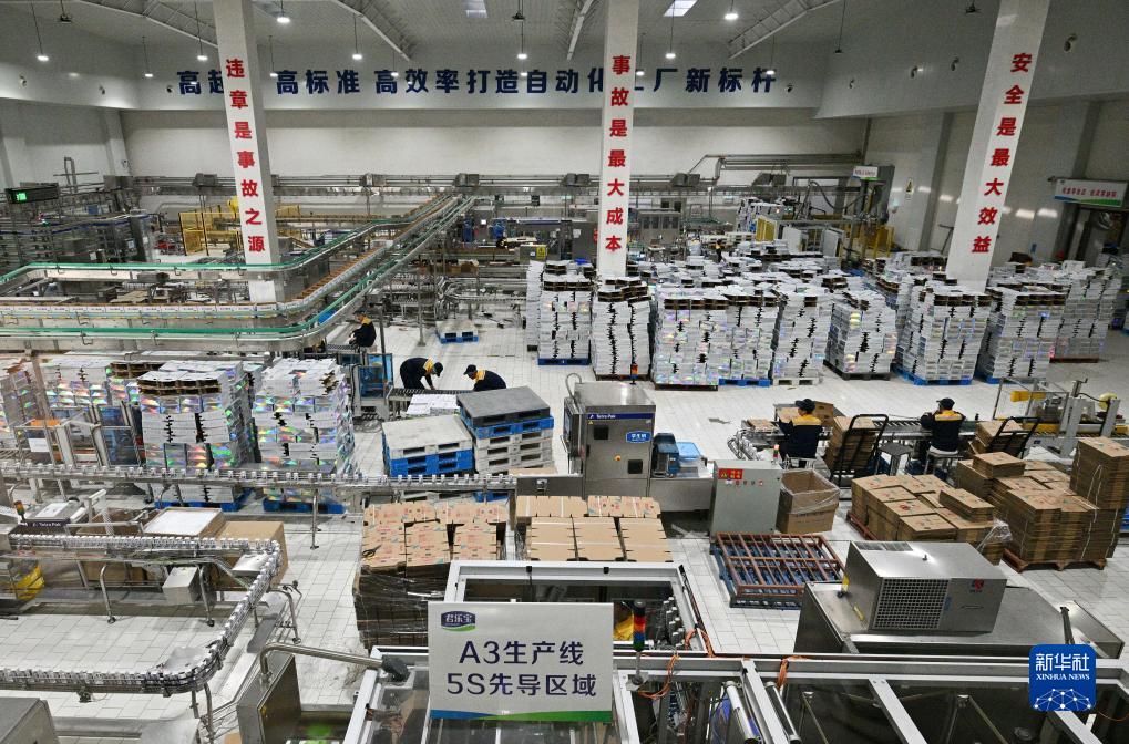 工作人員在威縣君樂(lè )寶乳業(yè)有限公司包裝車(chē)間工作(11月22日攝)。