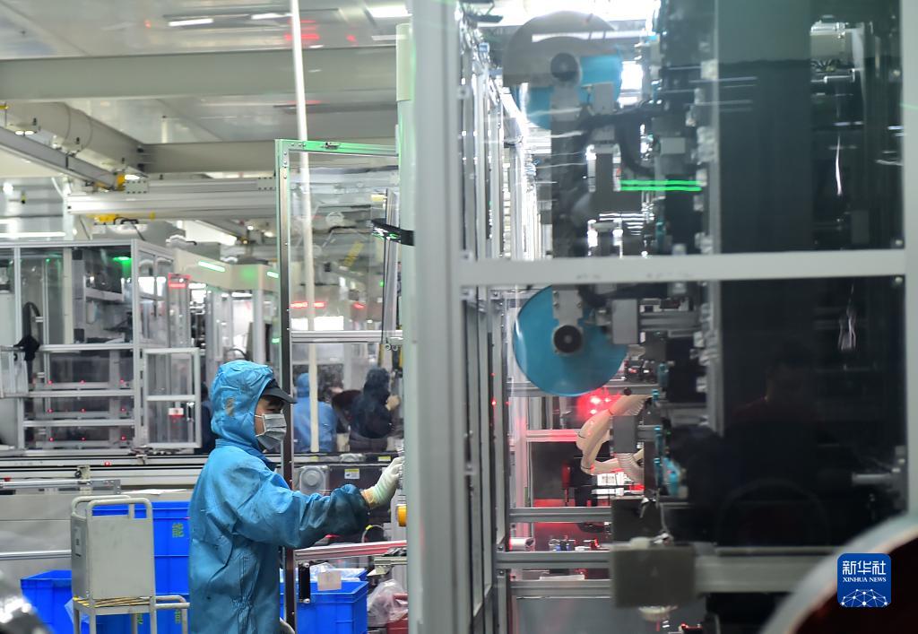 11月21日,在江西鷹潭耀寧新能源科技有限公司生產(chǎn)車(chē)間,技術(shù)工人在生產(chǎn)線(xiàn)上作業(yè)。