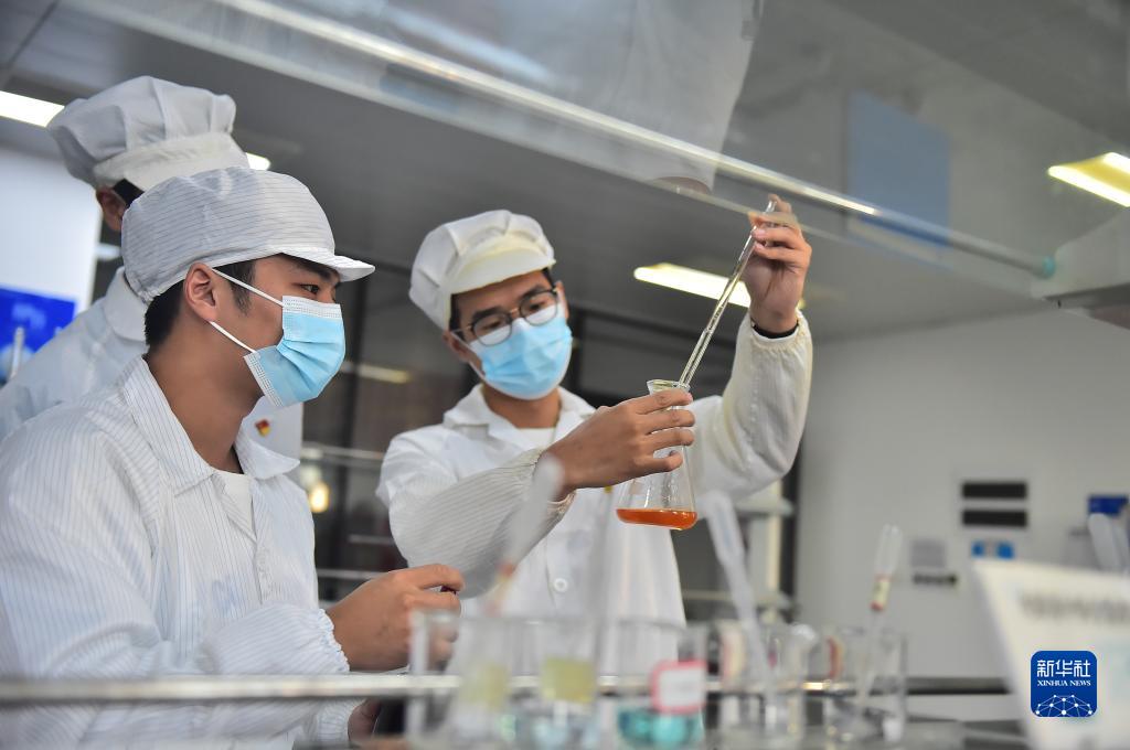 11月21日,在江西鑫鉑瑞科技有限公司實(shí)驗室,技術(shù)人員在進(jìn)行化學(xué)實(shí)驗。