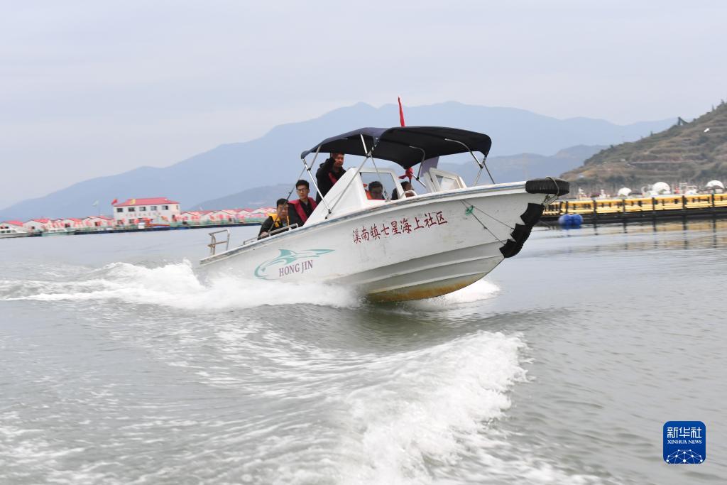 11月14日,福建省寧德市霞浦縣溪南鎮七星海上社區工作人員乘坐快艇前往轄區漁排進(jìn)行民情走訪(fǎng)。