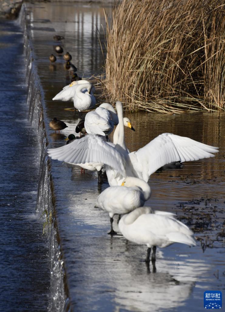 天鵝在密云水庫流域太師屯小南河內休憩(11月22日攝)。