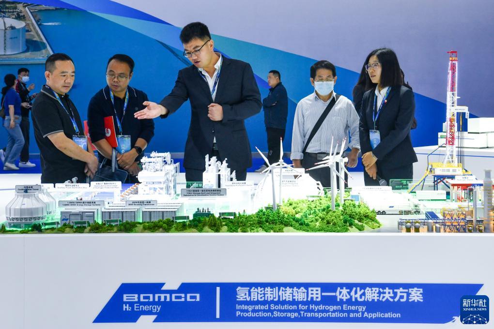 11月23日,觀(guān)眾在中國石油展臺了解氫能制儲輸用一體化解決方案。