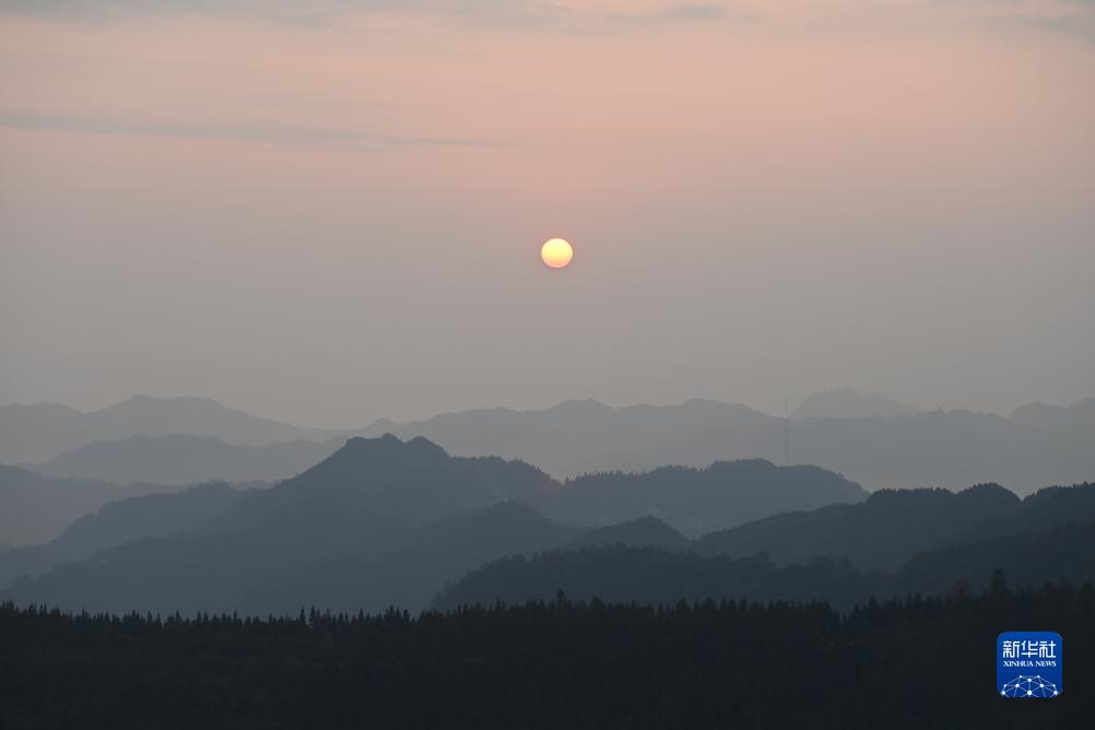 當日清晨,廣西樂(lè )業(yè)縣紅日初升,晨霧中的群山充滿(mǎn)詩(shī)情畫(huà)意。