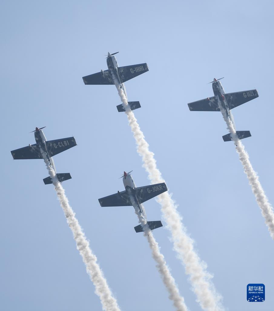 11月23日,歐洲“穿越騎士”飛行表演隊在2023亞洲通用航空展開(kāi)幕式上進(jìn)行飛行表演。