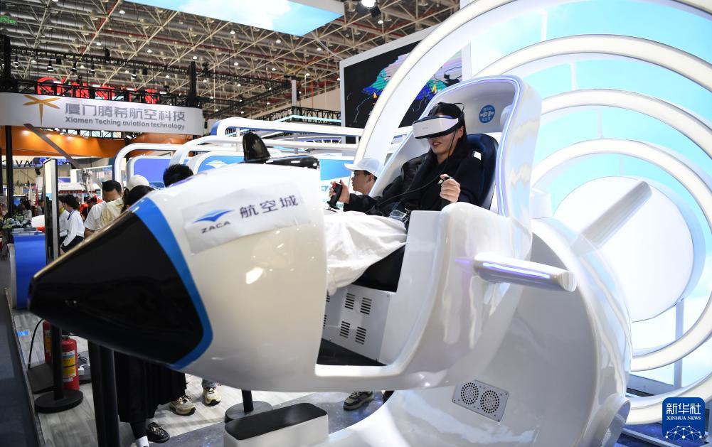 11月23日,觀(guān)眾在航展上體驗模擬飛行器。