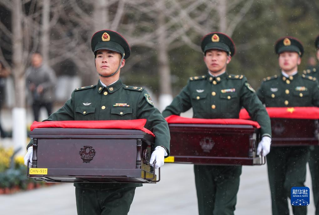 11月23日,志愿軍烈士遺骸抵達沈陽(yáng)抗美援朝烈士陵園。