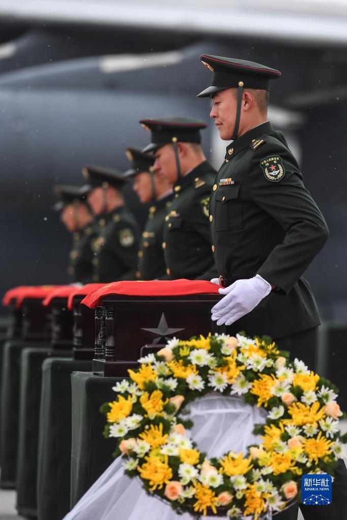 當日,第十批在韓中國人民志愿軍烈士遺骸由我空軍專(zhuān)機護送從韓國接回遼寧沈陽(yáng),25位志愿軍烈士遺骸及相關(guān)遺物回到祖國。