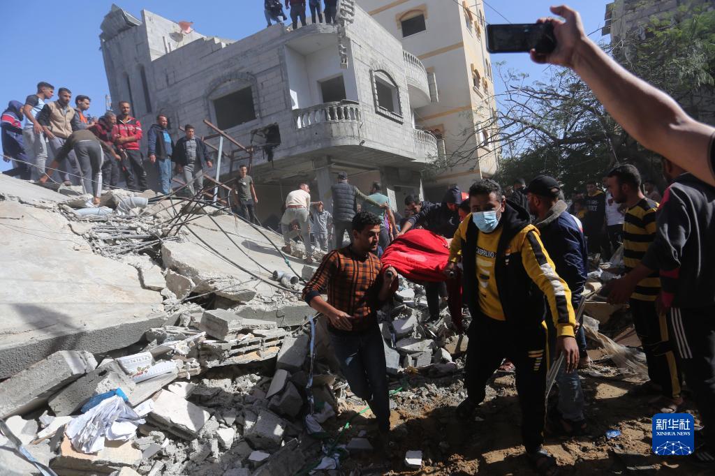 11月23日,人們從加沙地帶南部城市拉法一處廢墟中救出一名傷者。