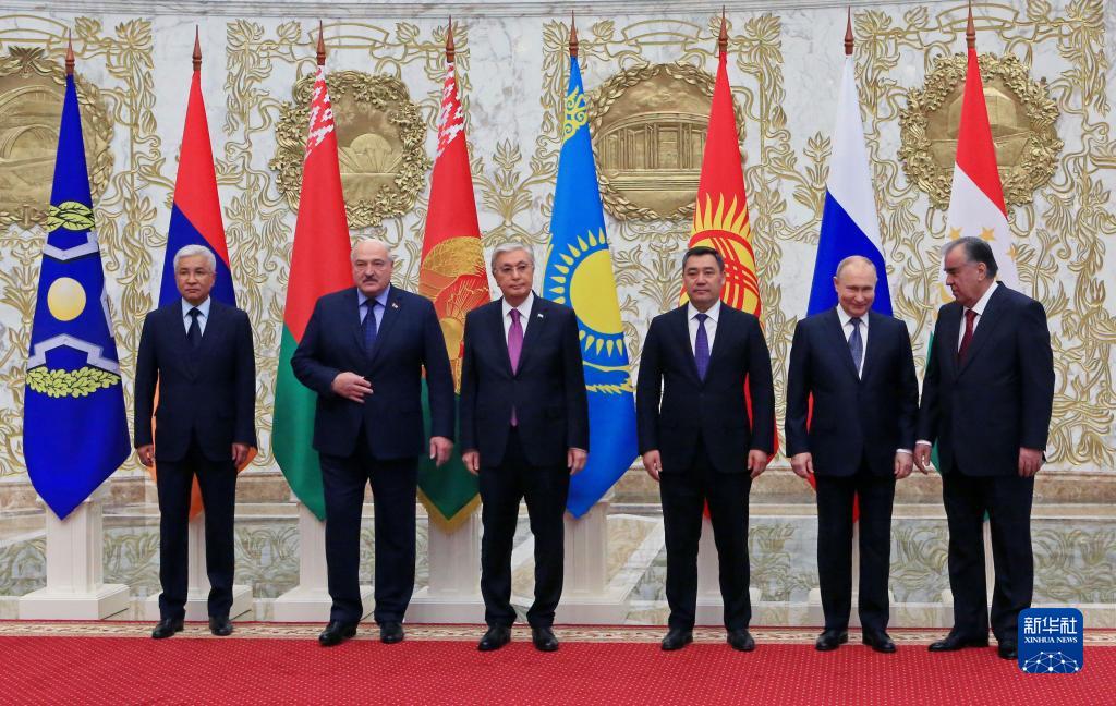11月23日,集安組織成員國領(lǐng)導人和集安組織秘書(shū)長(cháng)塔斯馬加姆別托夫(左一)在明斯克獨立宮合影。
