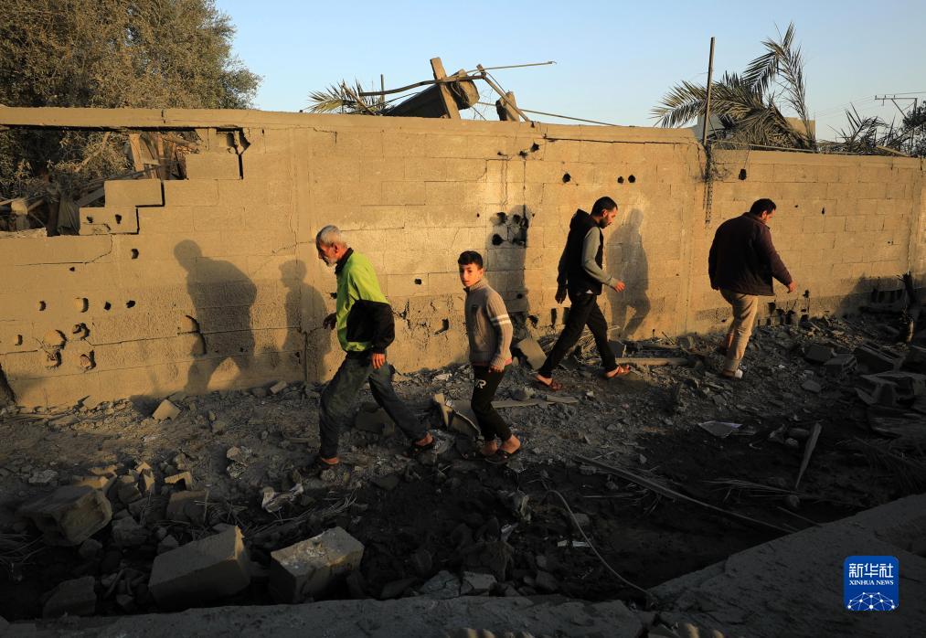 11月23日,在加沙地帶南部的汗尤尼斯,人們從以軍襲擊后破損的街頭走過(guò)。
