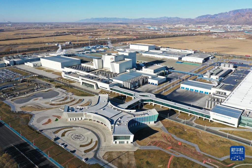 這是11月23日拍攝的呼和浩特市伊利現代智慧健康谷一景,伊利液態(tài)奶全球智造標桿基地等工廠(chǎng)坐落于此(無(wú)人機照片)。