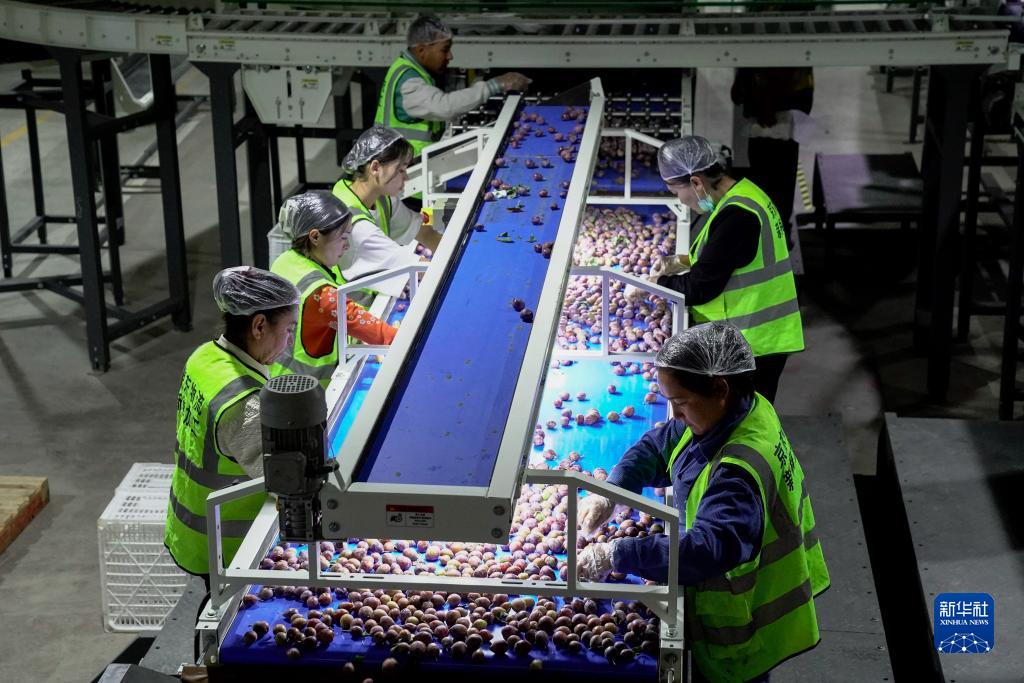 新疆伽師縣粵伽新梅產(chǎn)業(yè)園內的京東物流新疆智能供應鏈中心,員工在智能分揀線(xiàn)上作業(yè)(8月30日攝)。