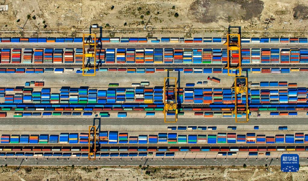 新疆霍爾果斯站換裝庫(9月6日攝,無(wú)人機照片)。目前,經(jīng)霍爾果斯鐵路口岸通行中歐(中亞)班列數量累計超過(guò)3.2萬(wàn)列,班列開(kāi)行線(xiàn)路累計達80條,輻射境外18個(gè)國家、45個(gè)城市和地區。