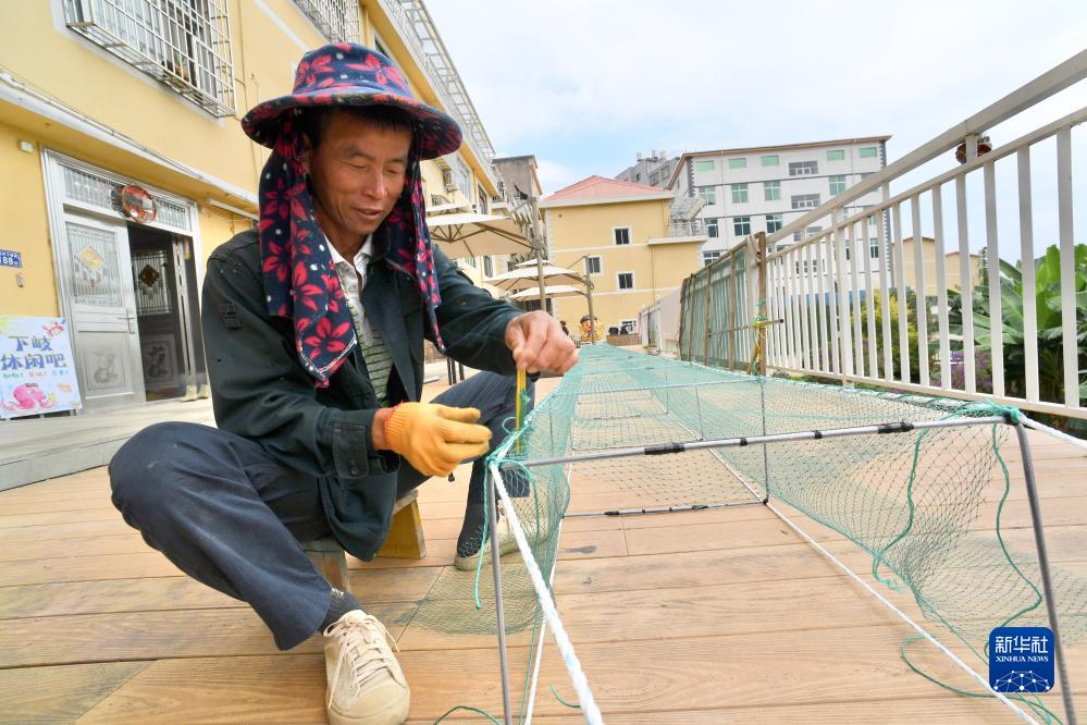 11月15日,下岐村村民在編織捕魚(yú)的漁具。