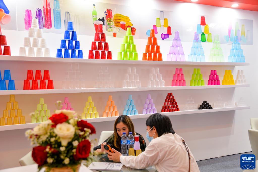11月23日,在印度尼西亞雅加達國際會(huì )展中心,參展商和參觀(guān)者在第五屆中國(印尼)貿易博覽會(huì )現場(chǎng)交談。