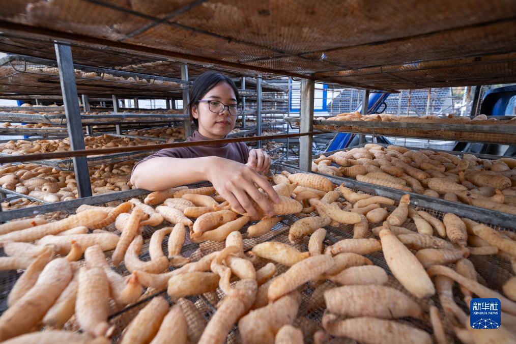 11月23日,在湖北省羅田縣九資河鎮葫蘆石村,藥農對初加工的天麻進(jìn)行挑揀。