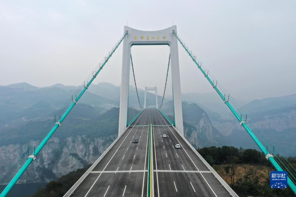 11月24日,車(chē)輛從貴金高速公路金烽烏江大橋上通過(guò)(無(wú)人機照片)。