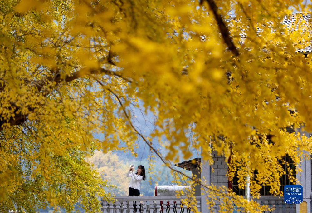 11月24日,游客在貴州省遵義市正安縣謝壩仡佬族苗族鄉上關(guān)村拍攝古銀杏樹(shù)。