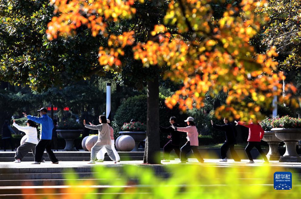 11月24日,市民在江蘇蘇州公園鍛煉。