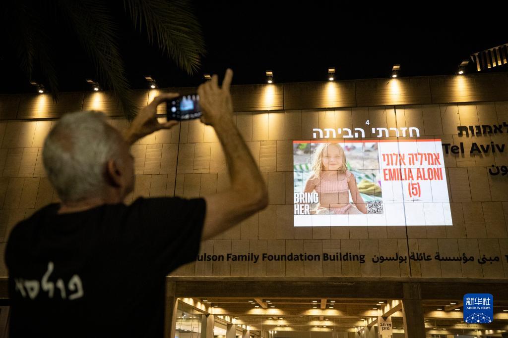11月24日,在以色列特拉維夫,第一批被釋放人員的照片映現在建筑物上。