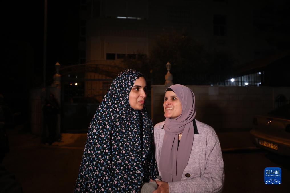 11月24日,一名被關(guān)押的巴勒斯坦人(左)獲釋后回到耶路撒冷。