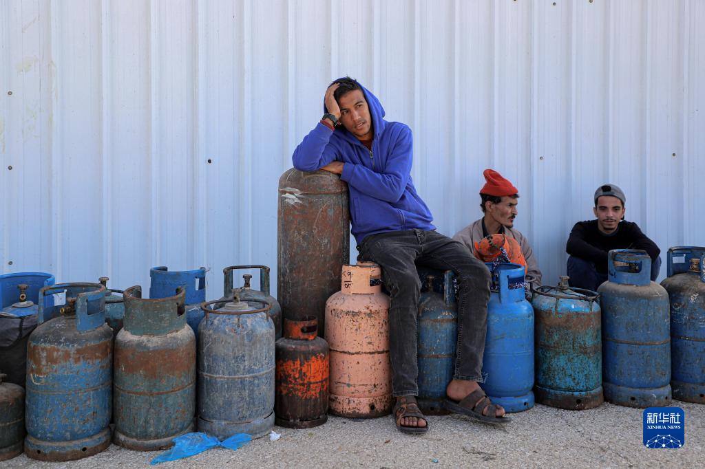 11月24日,在加沙地帶南部城市拉法,人們排隊等待充天然氣。