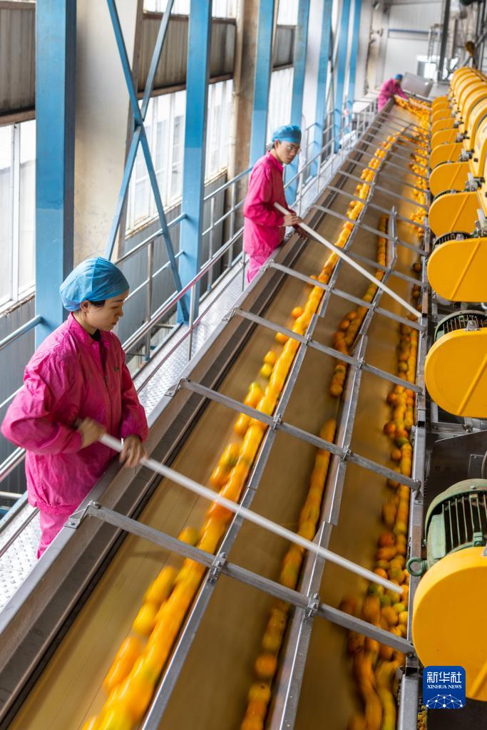 11月24日,在重慶市開(kāi)州區,工人在重慶天邦食品有限公司的榨汁車(chē)間作業(yè)。