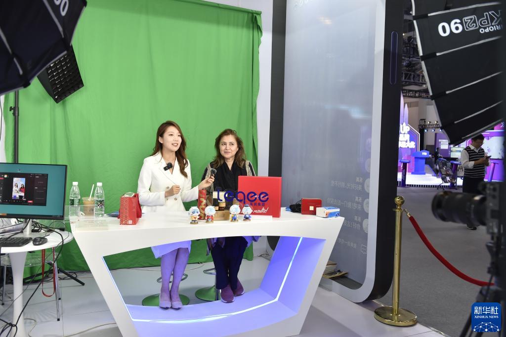 在第二屆全球數字貿易博覽會(huì )絲路電商館,外賓在“絲路電商日”活動(dòng)中體驗電商直播(11月24日攝)。