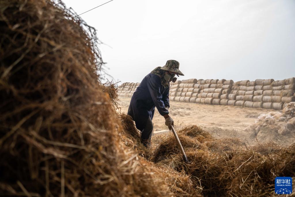 11月25日,在南縣武圣宮鎮沿河堤村,工人在整理秸稈。