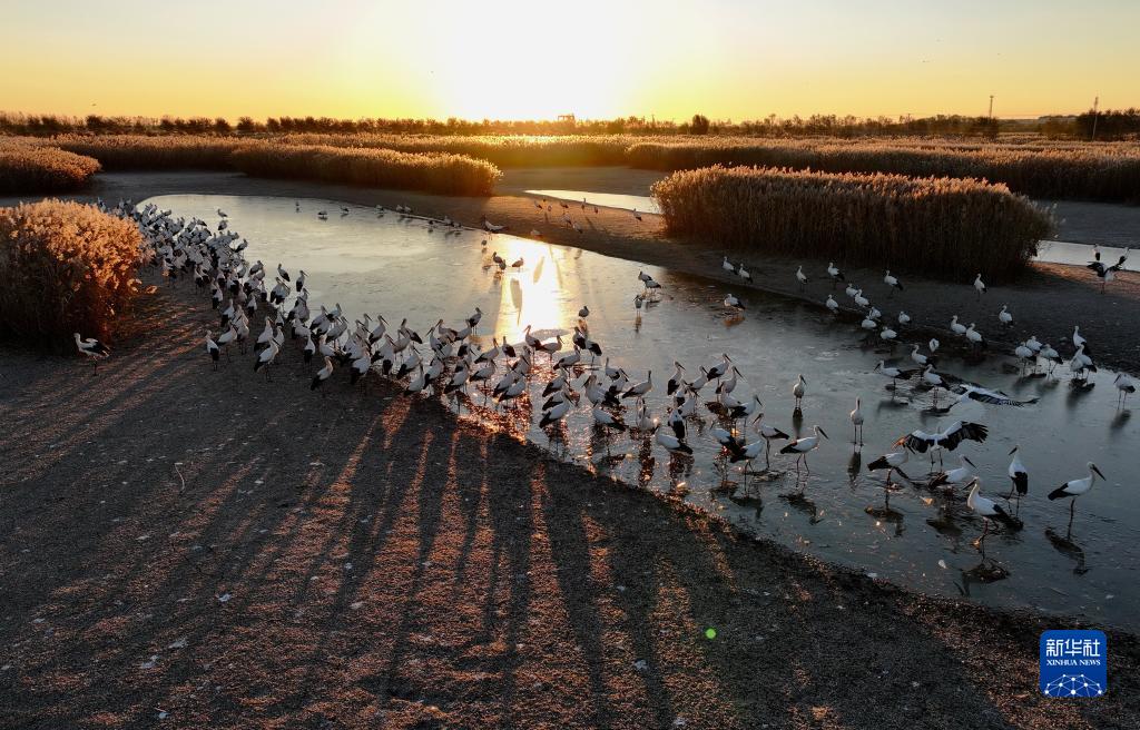 近日,大批東方白鸛、天鵝、大雁等候鳥(niǎo)飛抵河北省唐山市沿海濕地覓食、停留,形成一道靚麗的風(fēng)景。