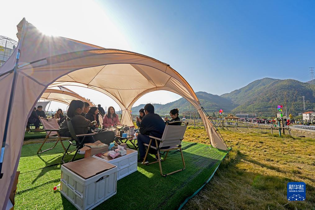 11月25日,在杭州市臨安區郎家村,游客在稻田文化節上體驗田園風(fēng)光。