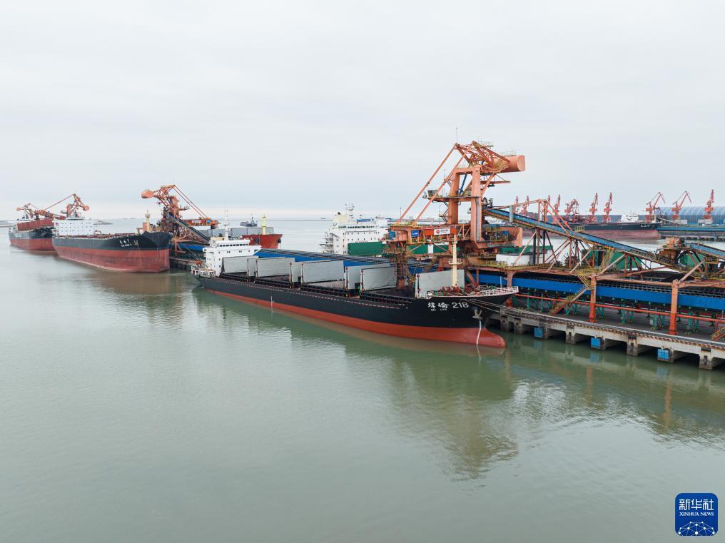 11月25日,船舶在黃驊港裝載電煤(無(wú)人機照片)。