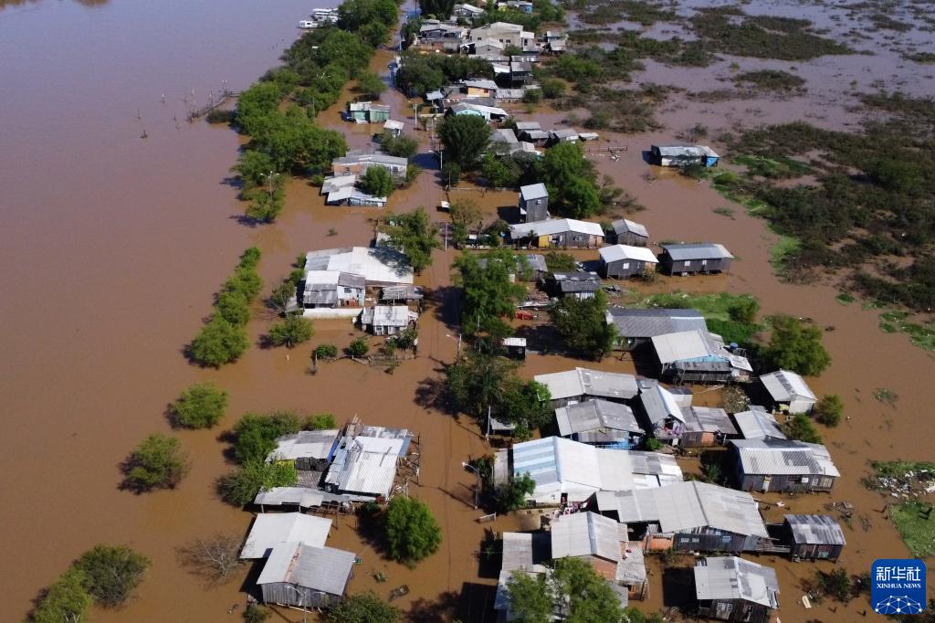 這是11月24日在巴西南里奧格蘭德航拍的洪水災情(無(wú)人機照片)。