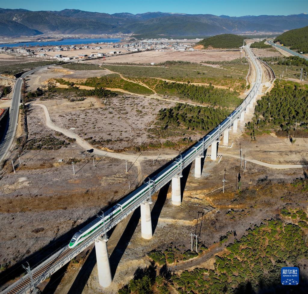 11月26日,列車(chē)行駛在麗香鐵路線(xiàn)上(無(wú)人機照片)。