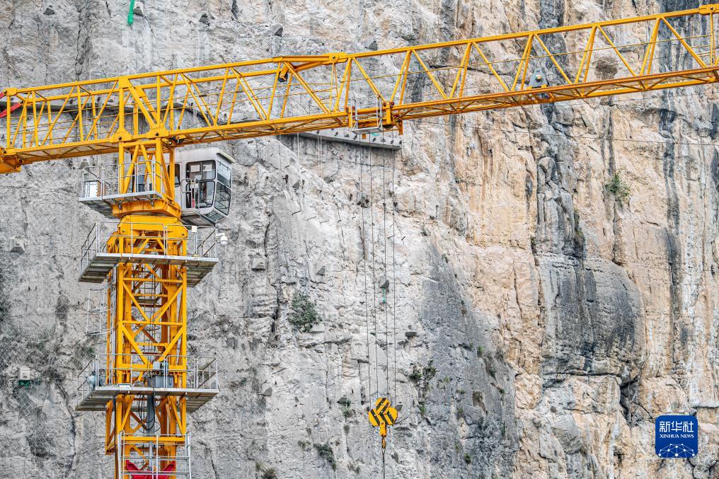 11月26日,在位于重慶市酉陽(yáng)土家族苗族自治縣龔灘鎮境內的阿蓬江大橋施工建設現場(chǎng),工人正在現場(chǎng)作業(yè)。